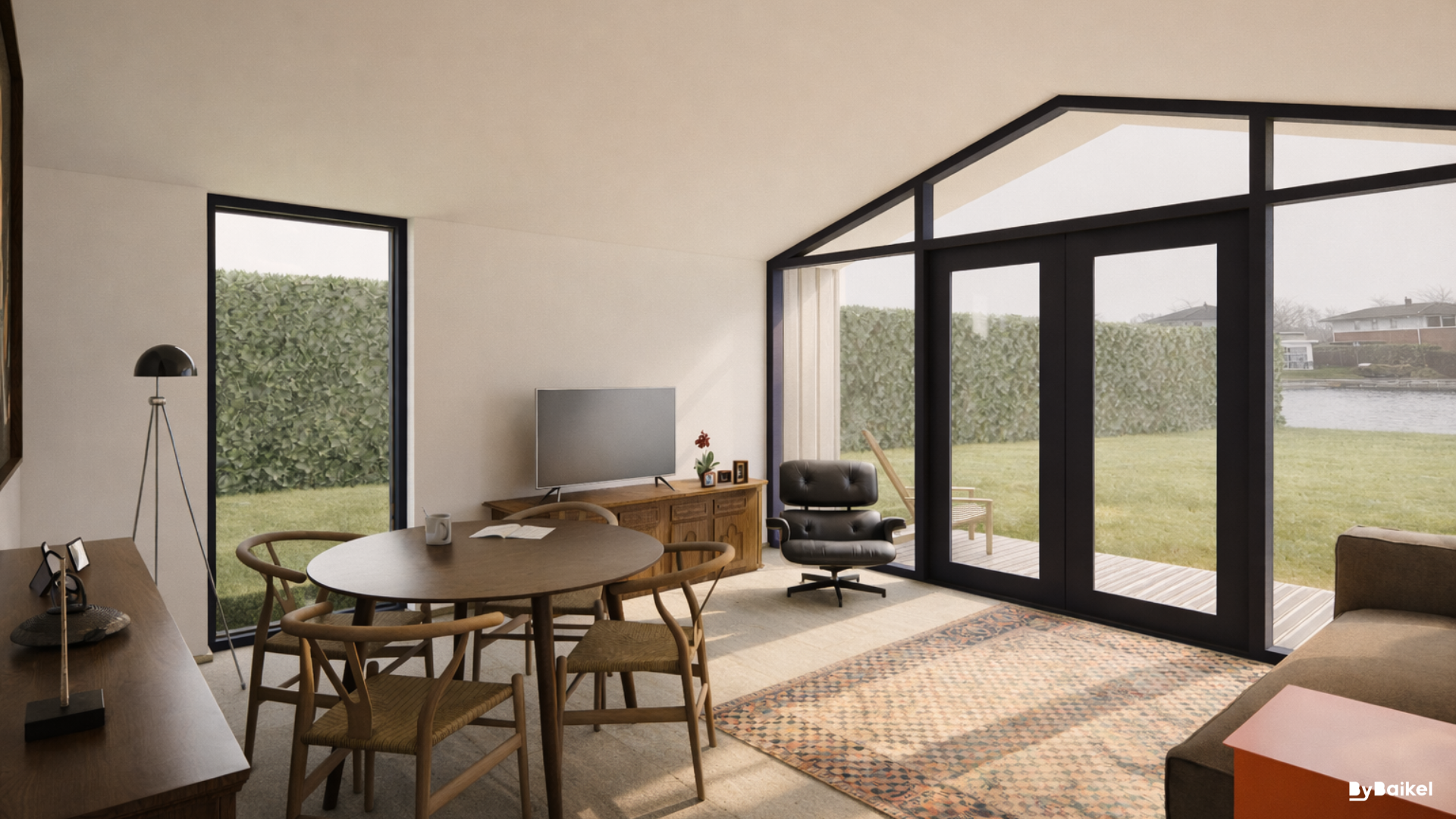 Voor deze opdracht ontwierpen wij een aanleunwoning aan het bestaande woonhuis, prachtig gelegen aan het water. De toekomstige bewoonster verhuist naar deze compacte, gelijkvloerse woning, terwijl haar familie het hoofdhuis betrekt. Zo blijft zorg altijd dichtbij, met behoud van zelfstandigheid en privacy.